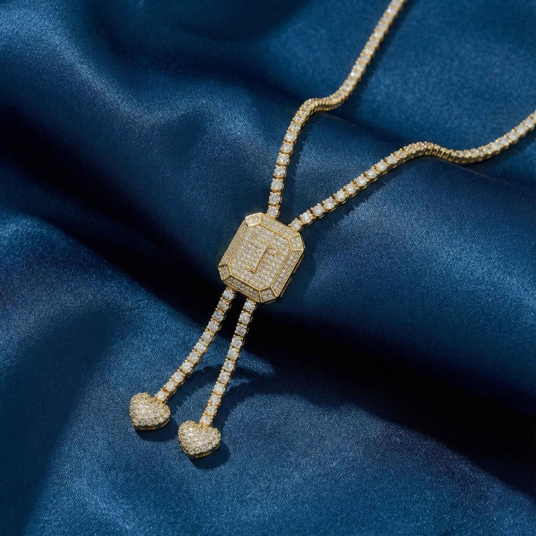 Chữ T là khởi đầu của chữ Tình. Mặt dây chuyền như một lời khẳng định: Tình yêu là trọng tâm, là sự khởi nguồn vững chãi để dẫn lối đến hai trái tim đồng điệu bên dưới. Một thiết kế tuyệt vời cho sự chung thủy và gắn kết.