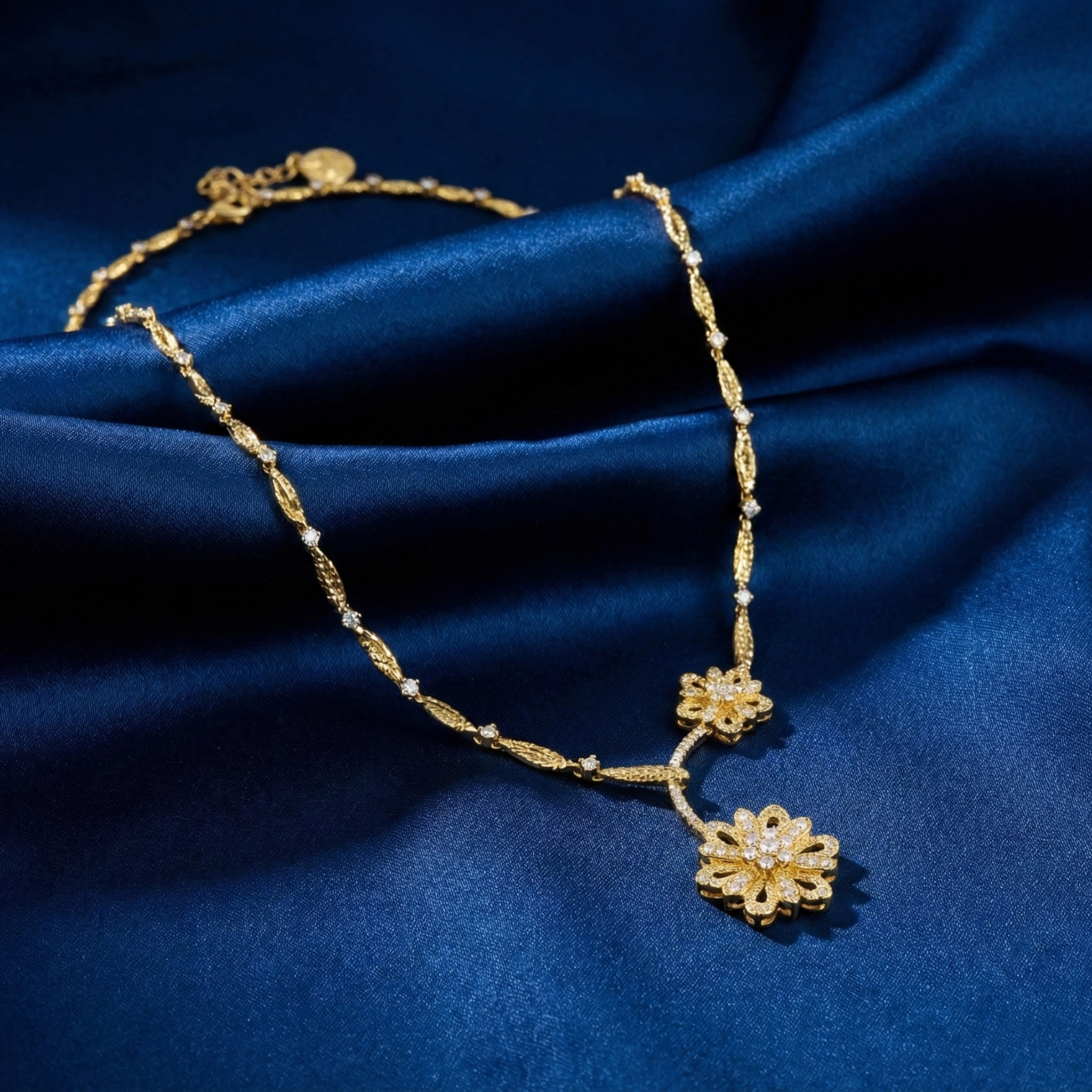 Không chỉ là một, mà là hai đóa hoa cùng tỏa sáng. Tượng trưng cho niềm vui nối tiếp niềm vui, may mắn song hành cùng tài lộc.