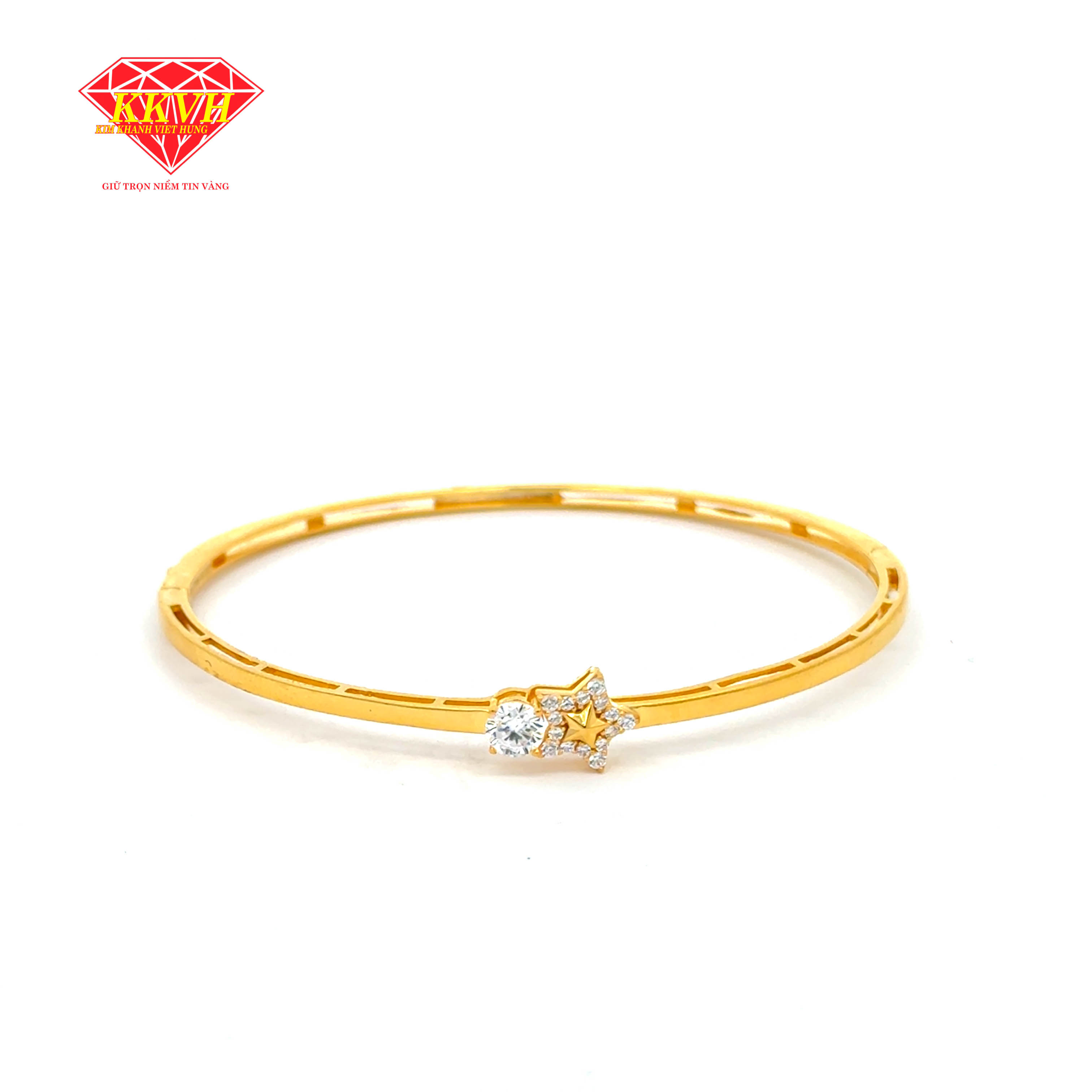 Thiết kế ngôi sao đính đá lấp lánh như ánh sao băng giữa trời đêm. Chiếc vòng là biểu tượng của may mắn, khởi đầu mới và sự tỏa sáng không giới hạn.