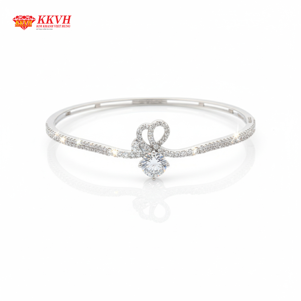Chiếc vòng kiềng độc đáo này là một bản giao hưởng ánh sáng trên cổ tay. Đường uốn lượn mềm mại như một nốt nhạc thăng hoa, với viên đá chủ rực rỡ là điểm nhấn âm vang, thu hút mọi ánh nhìn.